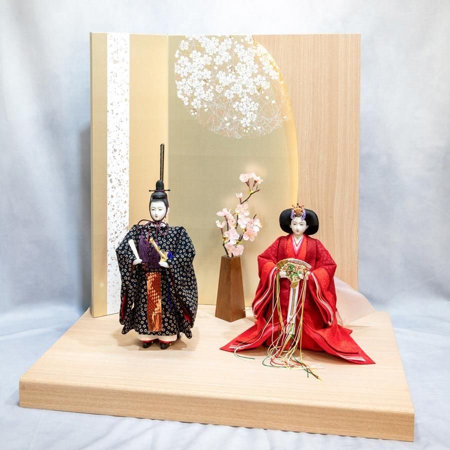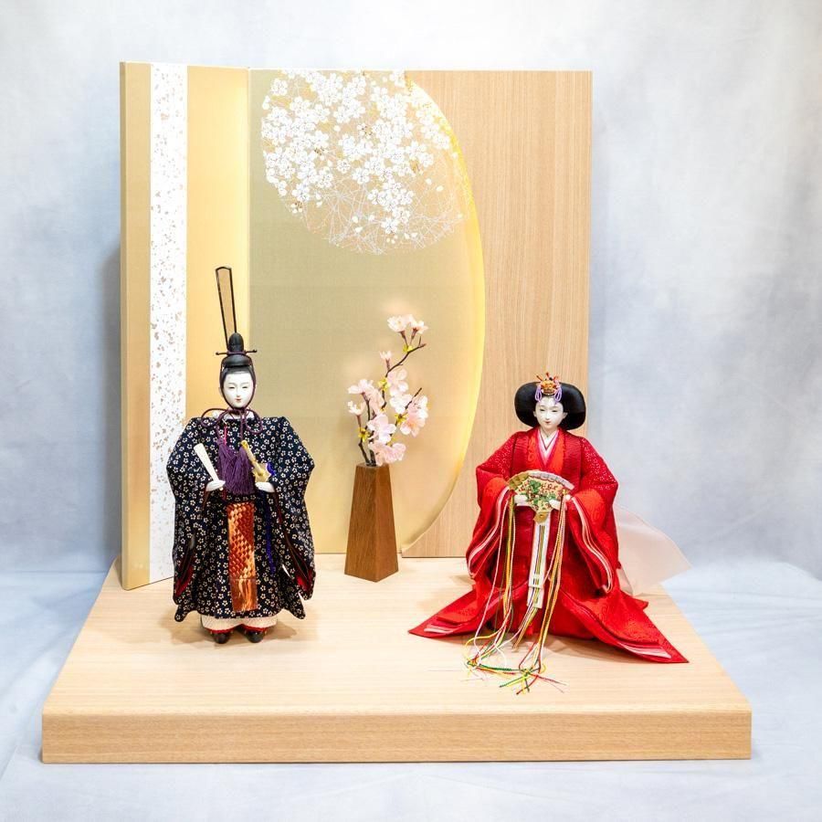 甲州印伝小桜柄 立雛十番親王麻和紙LED照明付きセット