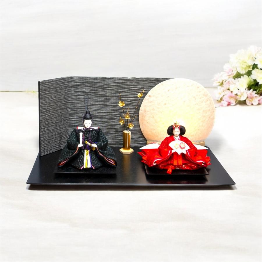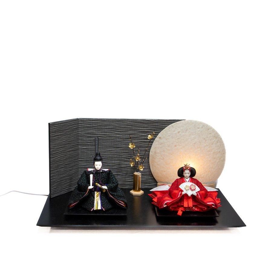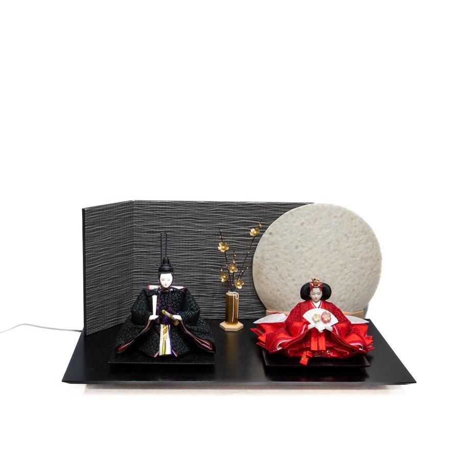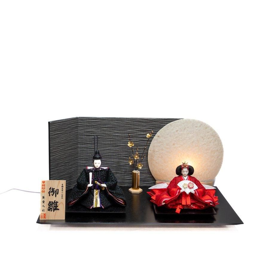 甲州印伝小桜柄黒・赤小三五親王 LED照明衝立 紅印雛セット