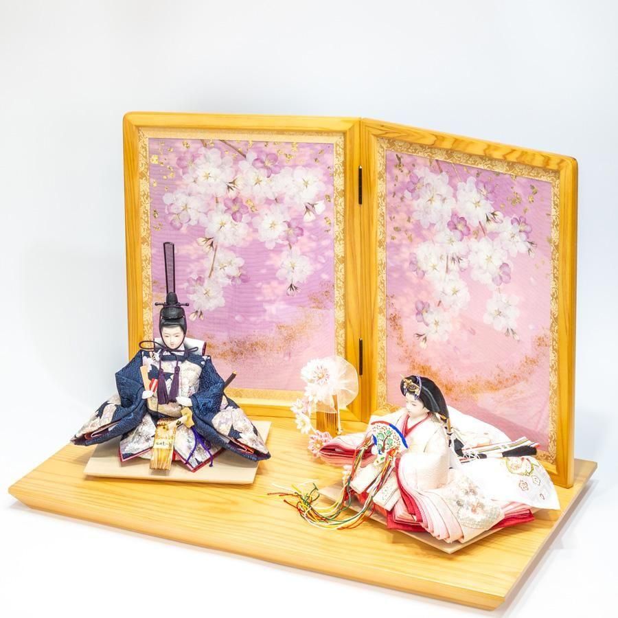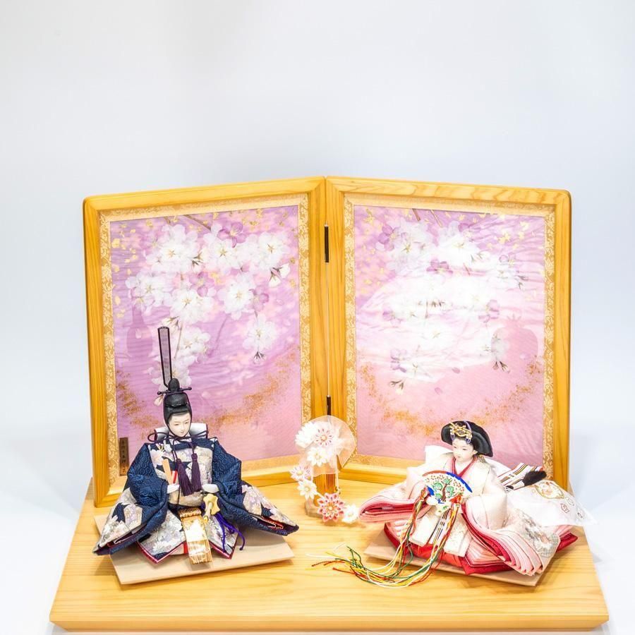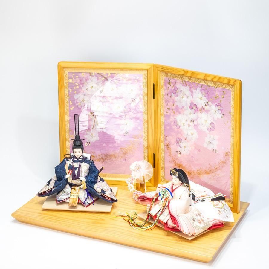 桜押し花額屏風天竜杉飾り台 小三五熨斗目に桜刺繍親王セット