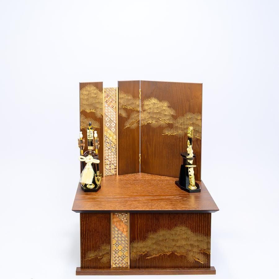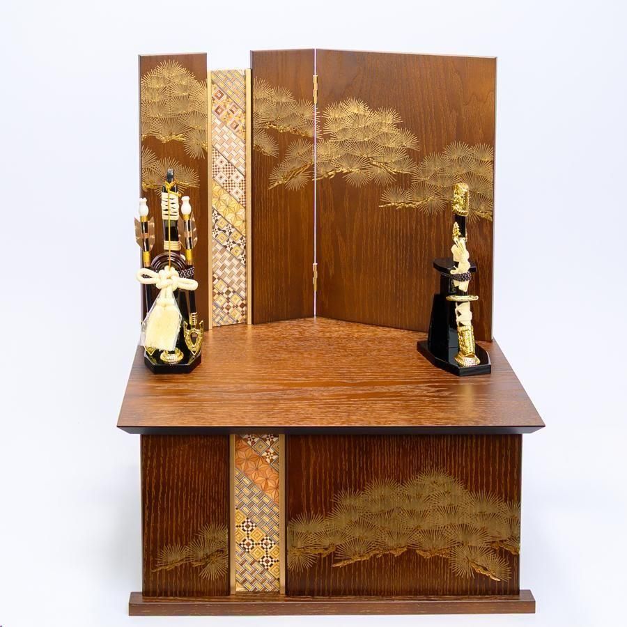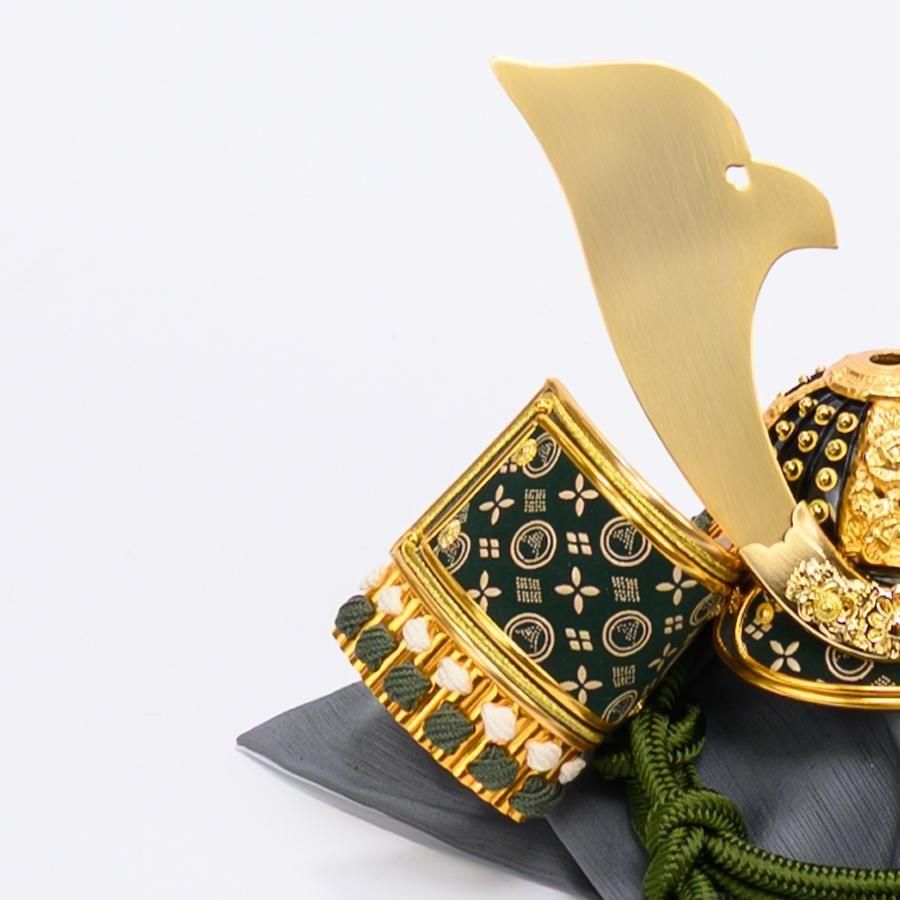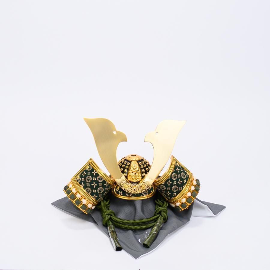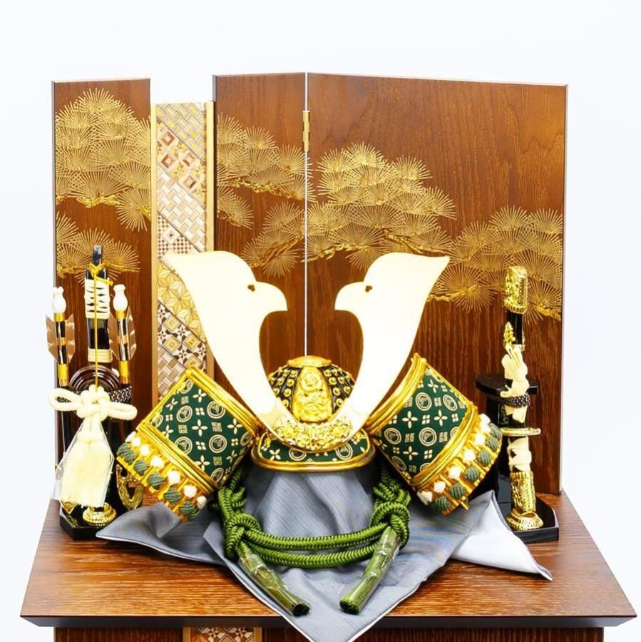甲州印伝緑富士山柄 8号深川緑大鍬型兜 オーク寄せ木収納飾りセット