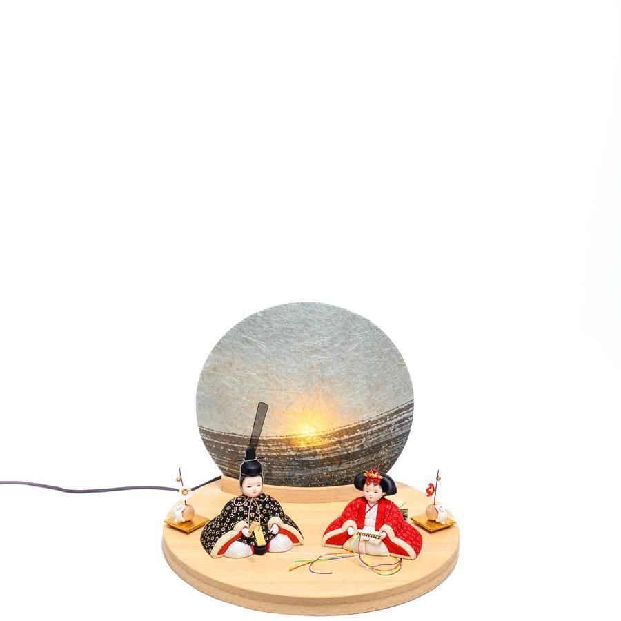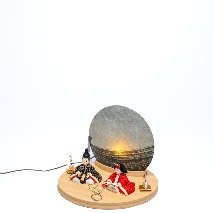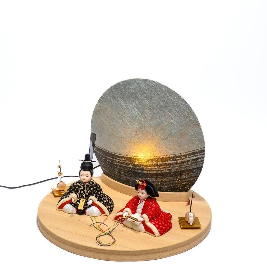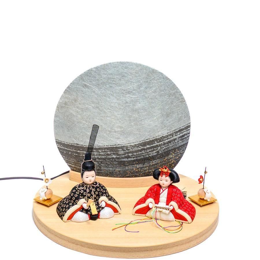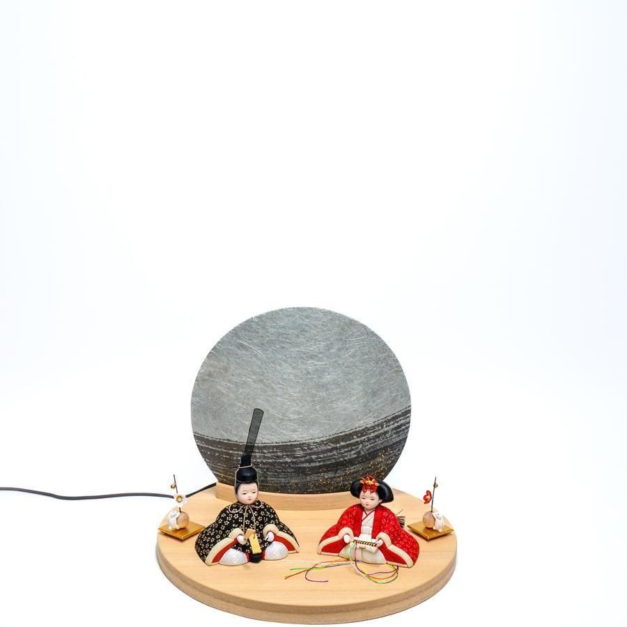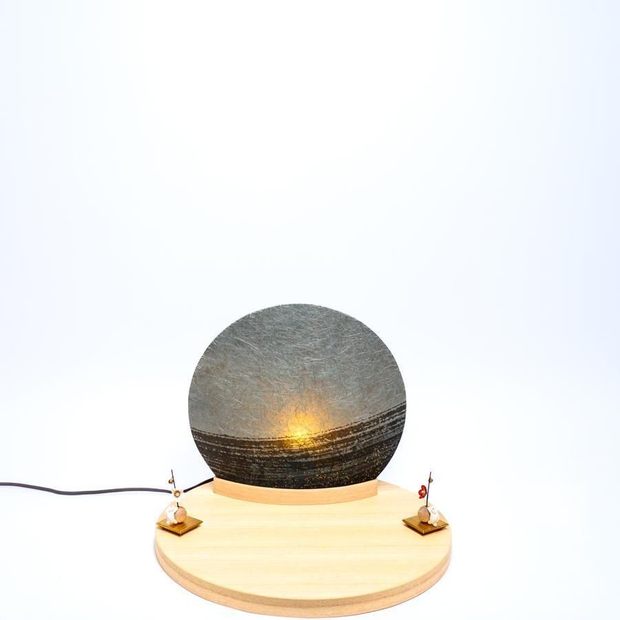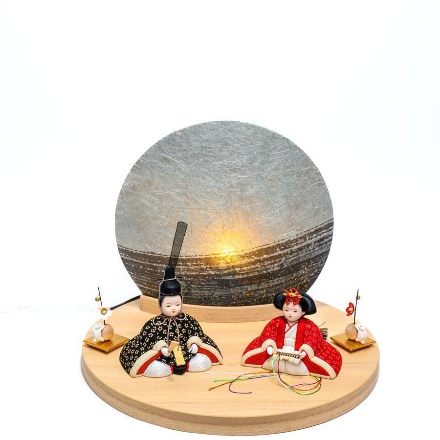 甲州印伝小桜柄・黒赤 若菜雛和紙LED照明円形台ピッコロセットsakurasakura